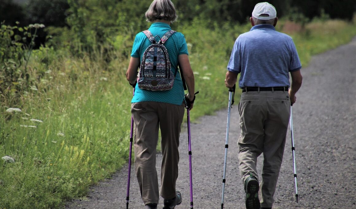 Another aspect of mindful walking involves the introduction of breathing techniques. Breathing plays a crucial role in mindfulness, as it helps seniors remain focused and grounded. Elderly participants can practice deep breathing by inhaling through the nose and exhaling through the mouth as they walk. This rhythmic connection between breath and movement supports relaxation and fosters awareness of their body’s sensations. Lengthening the exhale can enhance calming effects, helping to release tension and stress accumulated throughout the day. Additionally, seniors can incorporate affirmations or mantras to enhance their mindful walking experience. Choosing phrases like “I am calm” or “I am strong” can help reinforce positive thoughts while walking. This practice takes their focus off worries, promoting mental tranquility. To make walking even more engaging, it might be beneficial to walk in pairs or groups. This social interaction not only supports emotional well-being but also encourages accountability and consistency in maintaining an exercise routine. Swinging arms gently while walking can further enhance coordination and add variation to the walking pace.