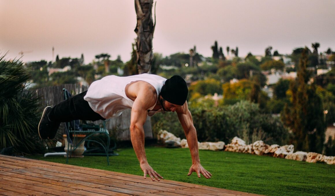 Nutrition plays a pivotal role in muscle gain when performing outdoor calisthenics. To optimize recovery and growth, consuming a well-balanced diet rich in protein, carbohydrates, and healthy fats is essential. Protein assists with the building and repair of muscles, so aim for sources like lean meats, legumes, dairy, and protein supplements if needed. Carbohydrates provide the energy necessary for workouts, helping you perform effectively. Fruits, vegetables, and whole grains are great carbohydrate sources that also give essential vitamins and minerals. Healthy fats, found in avocados, nuts, and seeds, support hormone production, which is crucial for muscle growth. Always consider the timing of your meals and snacks; consuming high-protein meals post-workout will help initiate muscle repair and growth. Aim to eat a combination of protein and carbohydrates after workouts within a 30 to 60-minute window. This will optimize your adaptations to training. Additionally, staying well-hydrated is important for muscle function, energy levels, and digestion. Outdoor workouts can lead to excessive sweating, and maintaining hydration will prevent fatigue and improve performance. Be proactive about your nutritional needs to support your calisthenics journey and muscle-building ambitions.