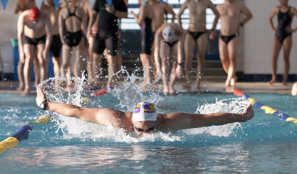 Swimming is a fantastic full-body workout, but it can lead to injuries if not approached properly. To prevent these injuries, incorporating cross-training exercises is essential. Cross-training helps improve muscle strength, flexibility, and overall performance while minimizing the risk of injury. The following cross-training exercises are highly beneficial for swimmers. First is core strengthening; a strong core stabilizes your body in the water. Effective exercises include planks, Russian twists, and Pilates. Next, strength training is vital; it enhances muscle strength and endurance which is crucial while swimming. Consider using resistance bands or weights. Flexibility training cannot be overstated; incorporating yoga or dynamic stretching will improve your range of motion. Additionally, you should practice swimming-specific stretches regularly. Aerobic conditioning also plays a significant role in your swimming efficiency; activities like cycling or running improve cardiovascular fitness. Lastly, balance training fosters coordination and body control. Exercises like Bosu ball work or single-leg stands are excellent. By integrating these workouts, you create a well-rounded fitness routine that not only enhances swimming performance but also effectively decreases the likelihood of injuries.