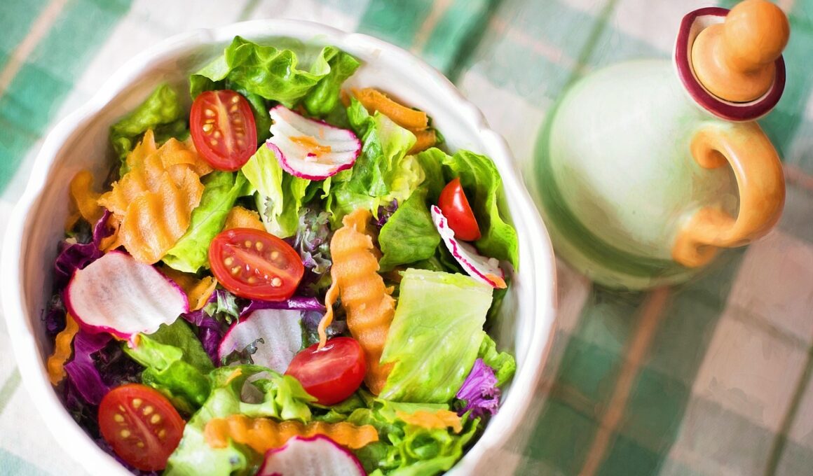 When choosing vegetables for a salad, one must prioritize freshness and variety. It’s essential to rotate seasonal vegetables to keep meals exciting and aligned with ever-changing flavor profiles. Local farmer’s markets offer a plethora of seasonal options. Think about incorporating colored bell peppers, which bring sweetness and crunch to salads, along with lightly blanched green beans or asparagus. These light and crisp ingredients celebrate summer’s bounty, providing bright flavors and beautiful colors. Additionally, root vegetables, when shaved thinly, can add substantial crunch while imparting earthy flavors that ground the dish. Fresh herbs also play a significant role in keeping the salad vibrant and fresh. Herbs such as cilantro, basil, or dill tout distinct flavor notes that brighten the entire dish without introducing allergens. Elevating salads with herbs not only amplifies taste but also cater to the aesthetic appeal. Their vibrant greens contrast beautifully against the colorful vegetables. Keep an eye on incorporating different shapes and colors for visual interest. Mixing textures with colors is essential for a powerful presentation that draws people to the table.