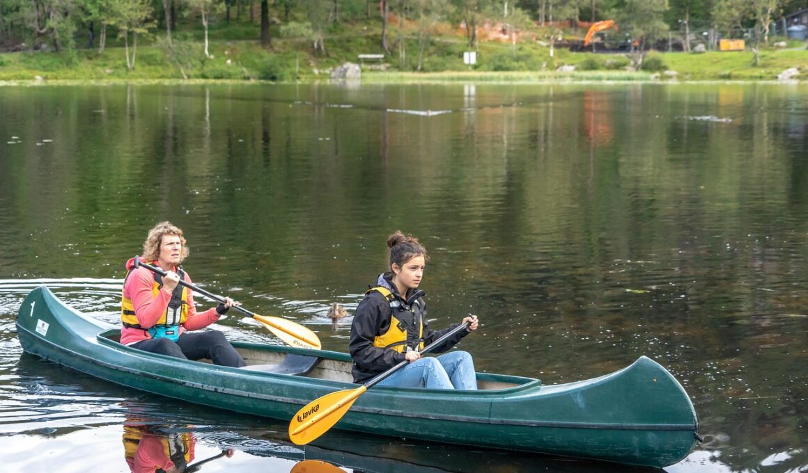 It’s essential to adapt canoeing sessions to align with specific fitness goals. First, casual paddlers looking to enjoy nature should focus on maintaining a relaxed pace and exploring various waterways. This leisurely approach can enhance enjoyment without pressure. Conversely, those aiming for higher fitness levels should consider focusing on interval training techniques. Intensity variations during paddling sessions can provide increased heart rate without the monotony usually associated with traditional workouts. Incorporating time trials or specific distance goals can transform canoeing into a more rigorous workout. Additionally, regular goal assessment is crucial. Individuals should periodically evaluate their progress to identify areas for improvement. This ongoing evaluation can help maintain motivation while ensuring fitness goals stay on track. Setting achievable milestones fosters a sense of accomplishment, leading to continued participation in this outdoor fitness activity. Furthermore, mixing other forms of exercise with canoeing can provide balanced fitness. Combining land workouts such as running or swimming with regular canoeing enhances overall performance and prevents injuries. Lastly, exploring varying locations brings new excitement to the familiarity of a fitness routine, encouraging consistent outdoor engagement.