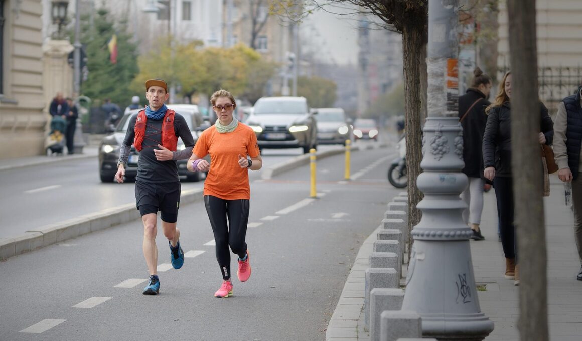 Choosing the right running clothes for urban and trail runs can significantly enhance your performance and comfort. Urban runs often require breathable fabrics that wick moisture away while ensuring you remain visible to traffic. Look for apparel incorporating reflective materials, especially if you run early in the morning or late in the evening. For leggings and shorts, prioritize fabrics that stretch but maintain their shape, allowing for freedom of movement. On colder days, layering becomes essential; consider a lightweight windbreaker to shield against chill without overheating. Don’t forget to choose footwear that provides adequate support and grip suitable for city terrain, which is typically flat and paved. Accessories such as sunglasses, hats, and headbands can protect from the sun and aid in comfort levels. Opt for light, quick-drying socks and avoid cotton, as it traps moisture. Lastly, always check local weather forecasts to dress appropriately for your urban running conditions, as this impacts your choice of clothing and accessories dramatically.
